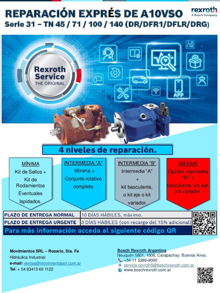 REPARACIÓN EXPRÉS DE A10VSOSerie 31 – TN 45 / 71 / 100 / 140 (DR/DFR1/DFLR/DRG)